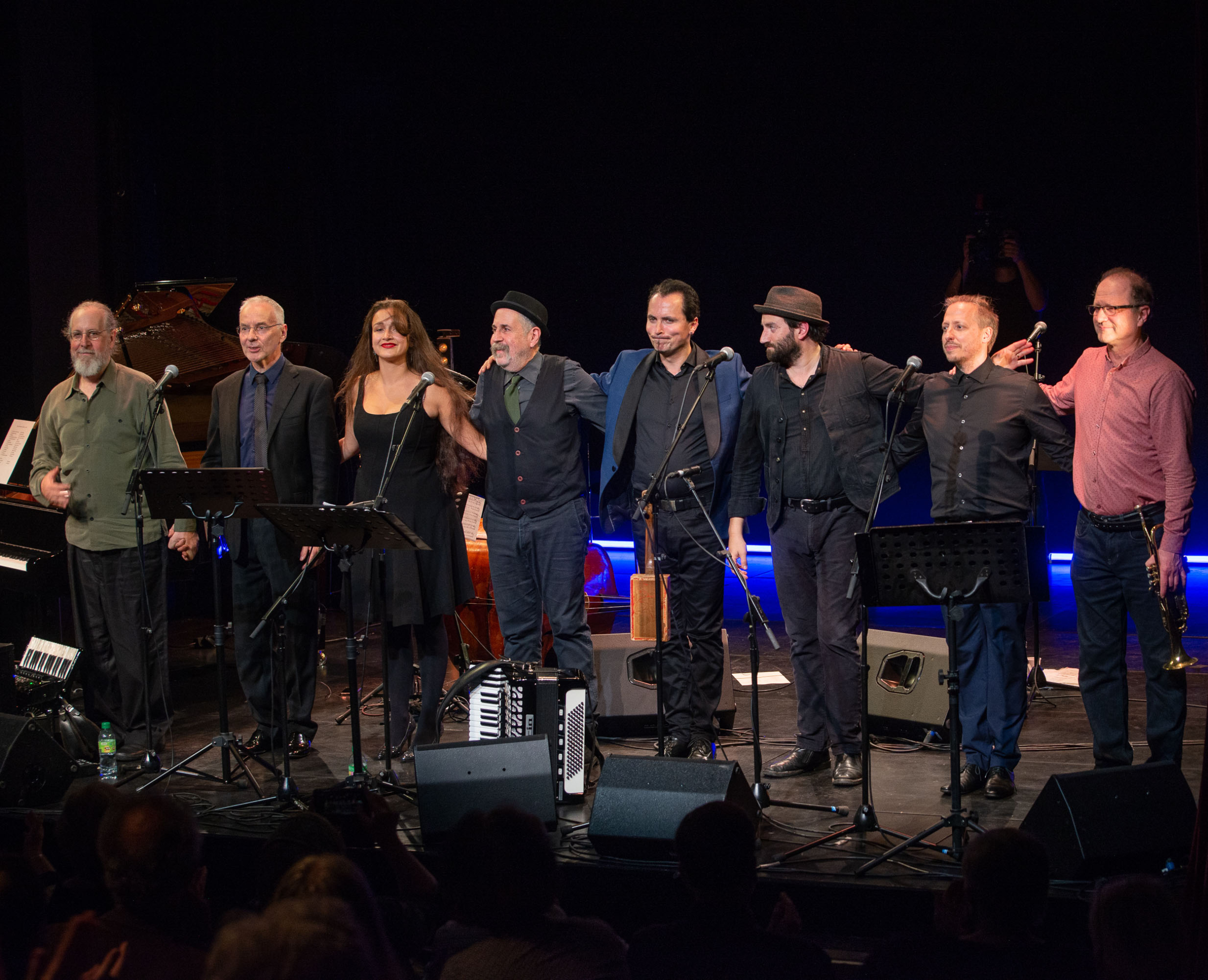 The Semer Ensemble features an all-star lineup of Yiddish music artists led by accordionist and pianist Alan Bern, of Brave Old World, and including acclaimed singer, accordionist and mandolin player Daniel Kahn; violinist Mark “Stempenyuk” Kovnatskiy, who performs with many of the most prominent ensembles of the Yiddish cultural revival; world music polyglot and bassist Martin Lillich; Forshpil singer and leader Sasha Lurje; Fayvish singer and leader Fabian Schnedler; and Grammy-winning singer and accordionist Lorin Sklamberg, of the Klezmatics.