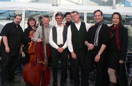 The New Budapest Orpheum Society members: Julia Bentley (mezzo soprano), Philip V. Bohlman (artistic director), Stewart Figa (baritone), Danny Howard (percussion), Iordanka Kissiova (violin), Ilya Levinson (music director and piano), Mark Sonksen (double bass), and Don Stille (accordion).